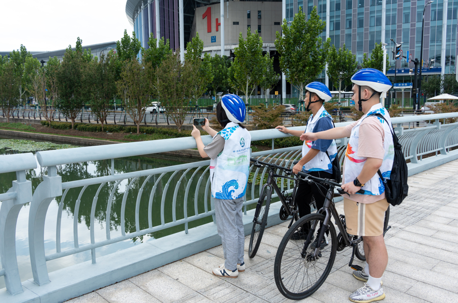 骑行巡河环节,青年护河志愿者集中前往小涞港,沿着河道骑行巡查,以青年视角记录河道周边存在问题,以青春活力为河道“健康”保驾护航。
